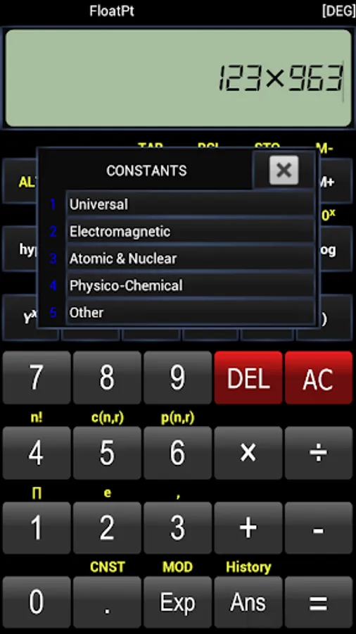 • Trigonometric functions in degree and radians.