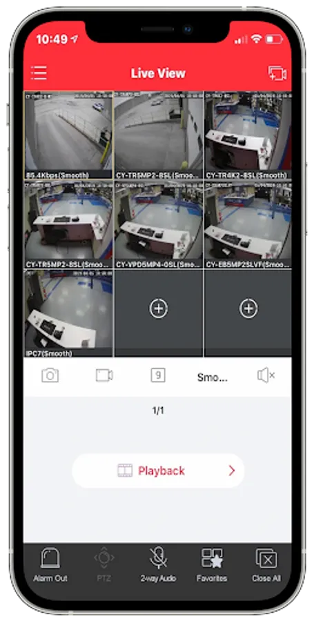 CymCam2™ is a mobile surveillance app. It can access Cymbol surveillance products through the network and view live or recorded video, receive alarms, and manage cloud devices using your mobile device.
