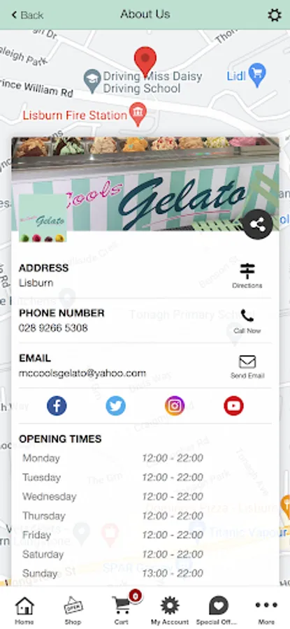 McCool's Gelato serve Ice-cream, churros, drinks, sweets and more to the local Lisburn area.
