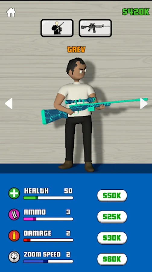 Upgrade your Characters and Weapons (Ammo, Fire rate, Health...)