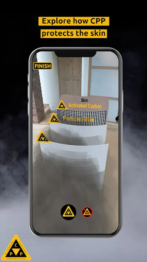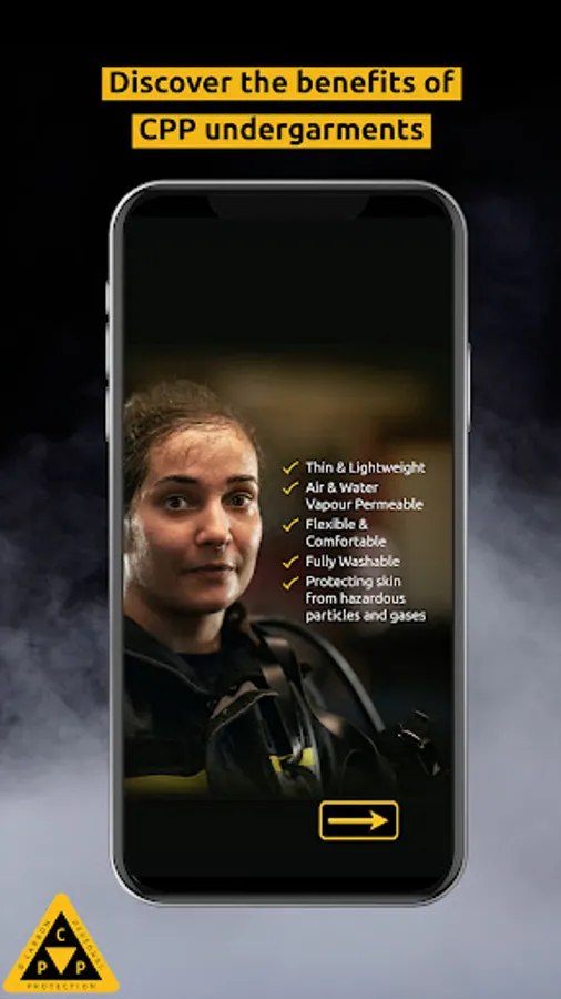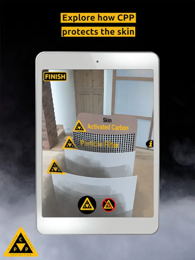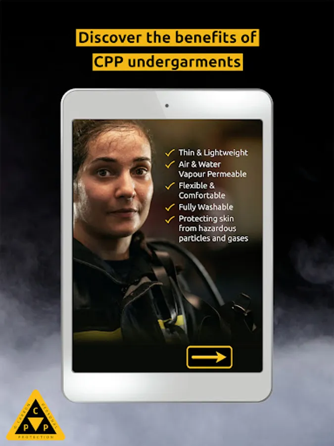 CPP augmented reality demo shows CPP undergarments in action and how it protects firefighters from dangerous gases and particles.