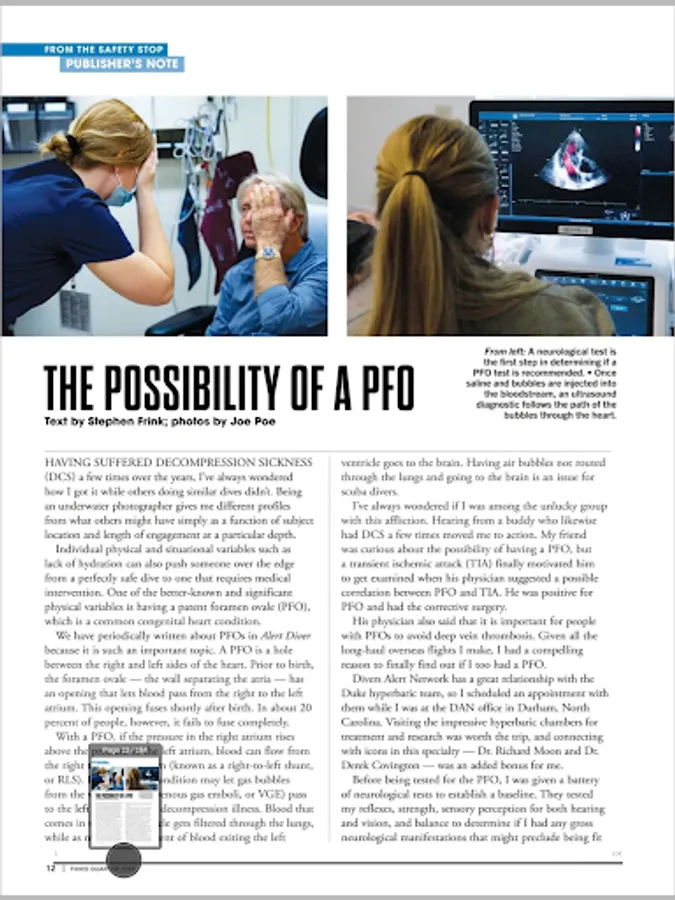 Alert Diver magazine, the dive industry’s leading publication, features DAN’s core content of research, education, medical information and dive safety. In addition, Alert Diver showcases underwater photography, dive travel and marine environmental topics.