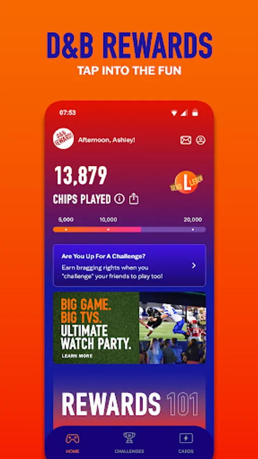Download FUN & Rewards straight to your phone with the new Dave & Buster’s app! D&B Rewards is bigger & better with a whole new look and new ways to earn rewards. LEVEL UP and create your D&B Rewards account in the app and start earning benefits: