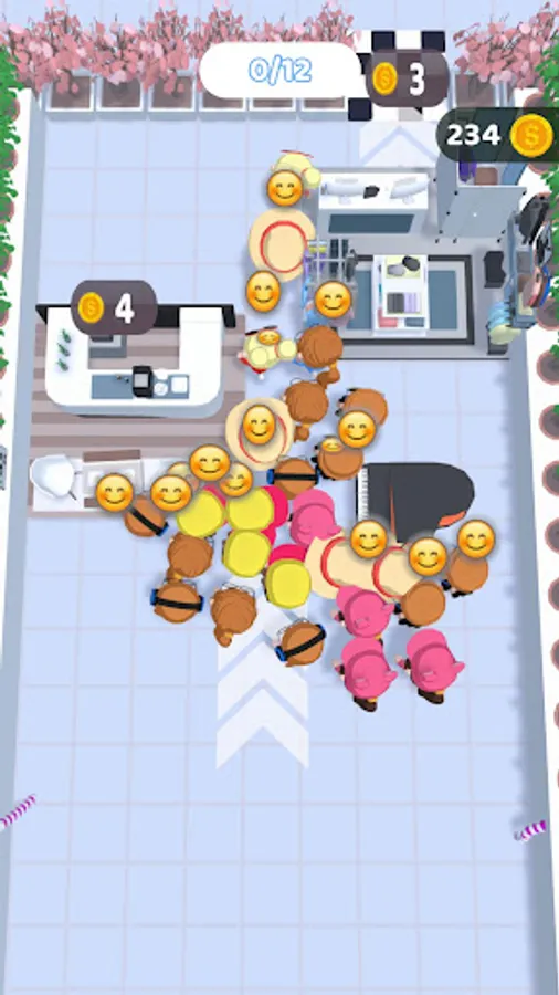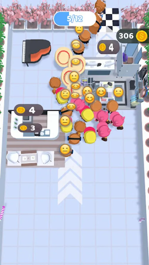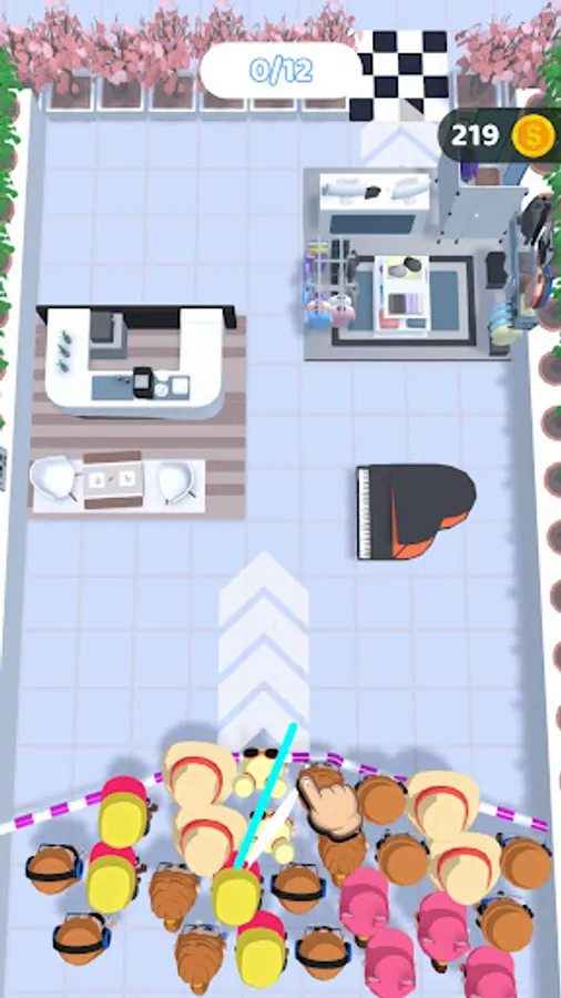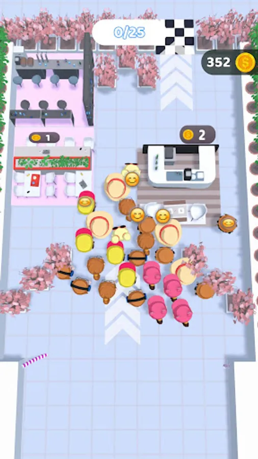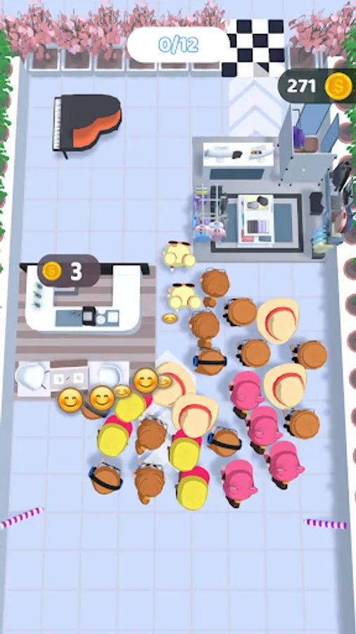 Much harder than it sounds, place the shops in the right positions so that people get to the end!