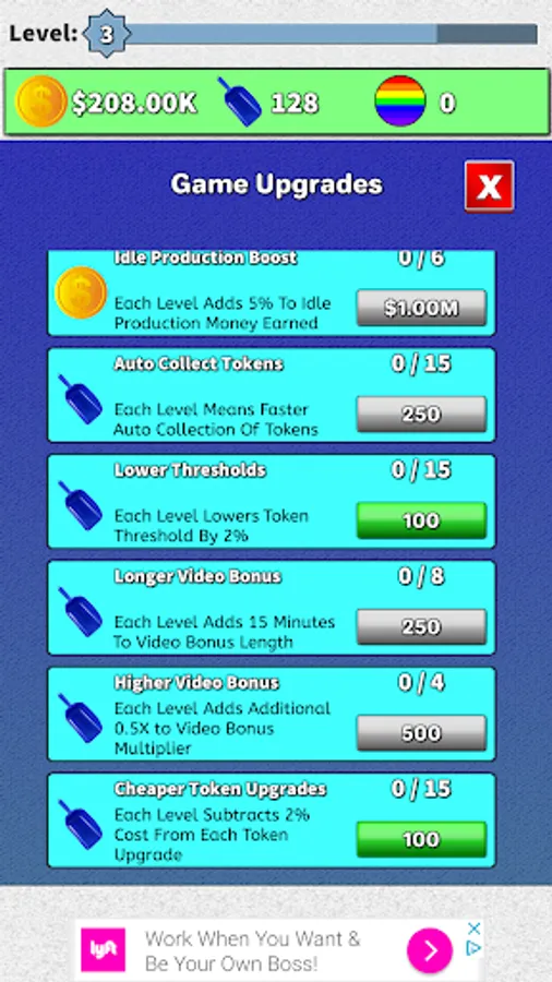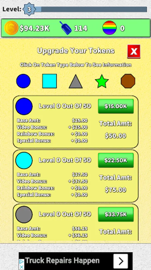 Click on the tokens to earn money.