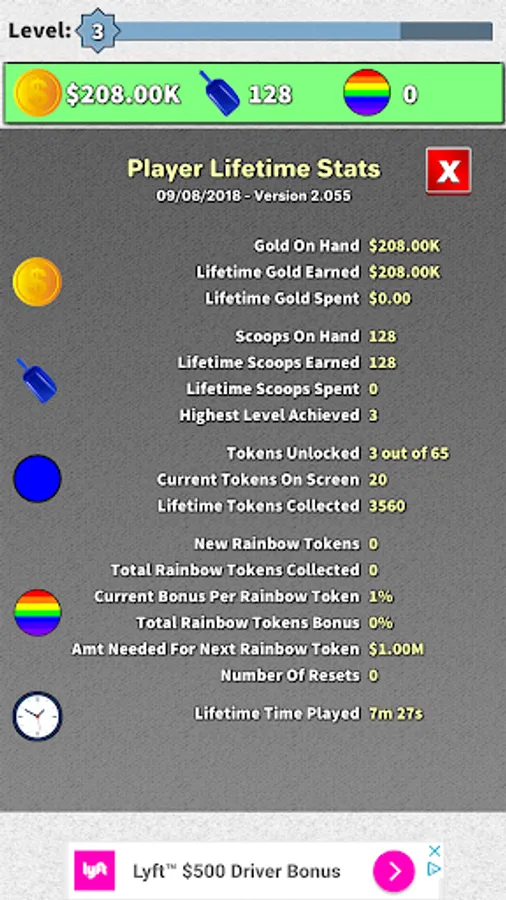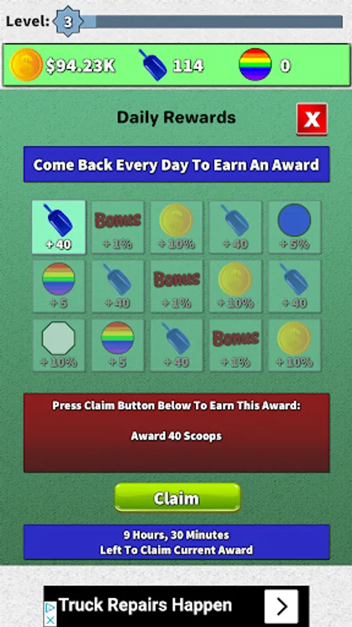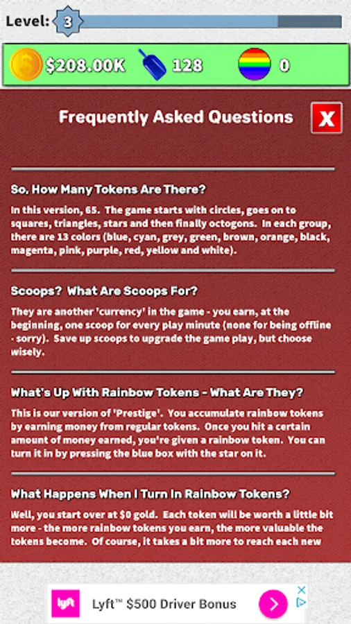 ● Each time you reach a level for the first time, you are awarded 10-25 scoops