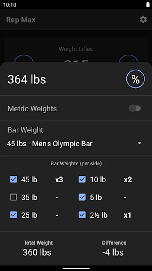 Need help determining which weights to put on the bar? Simply tap on any weight in the app to view the plate loader calculator. It will let you pick which weights you have available and the bar type you're using.
