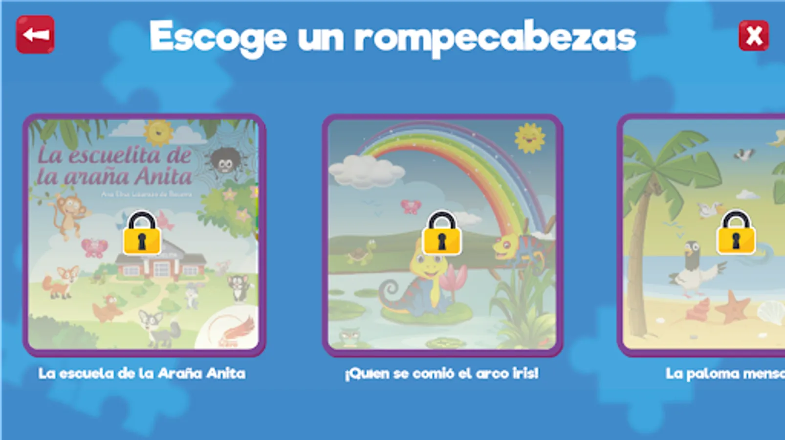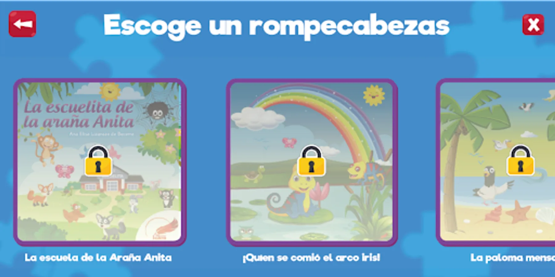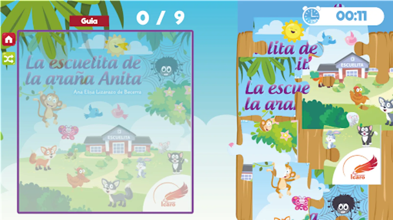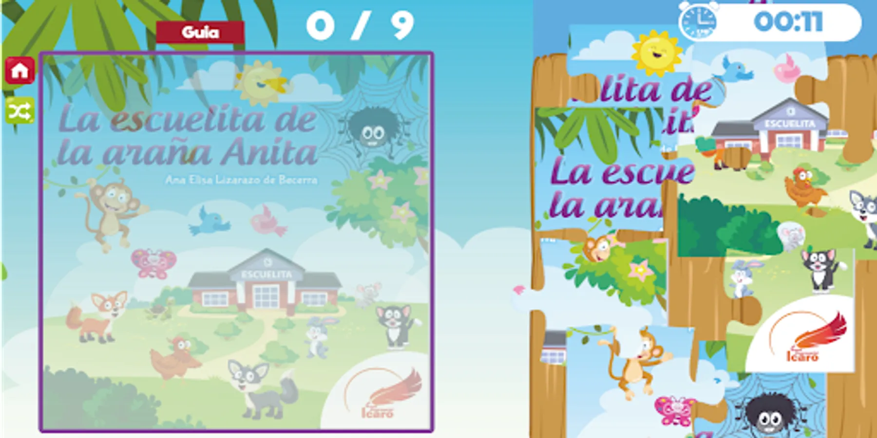 Fun puzzles from the book "La Escuelita de la Araña Anita", complete the puzzles to get new game modes and continue having fun with the characters from your book.
