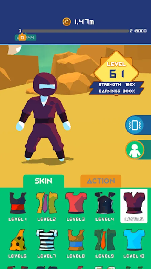 ・ You would never get bored with various upgrades like player’s skins and types of action.