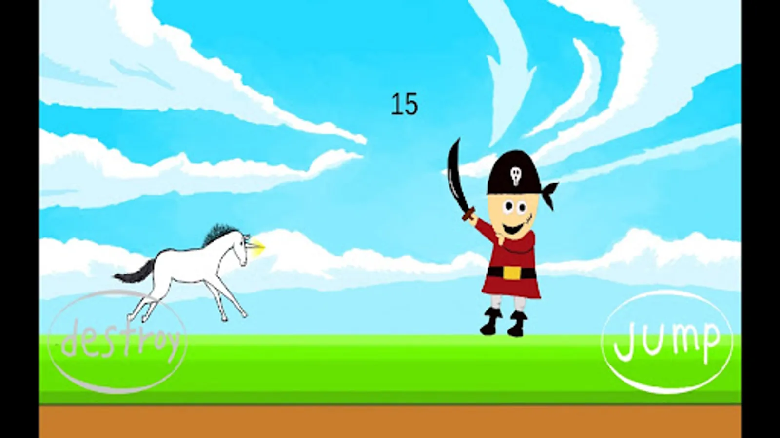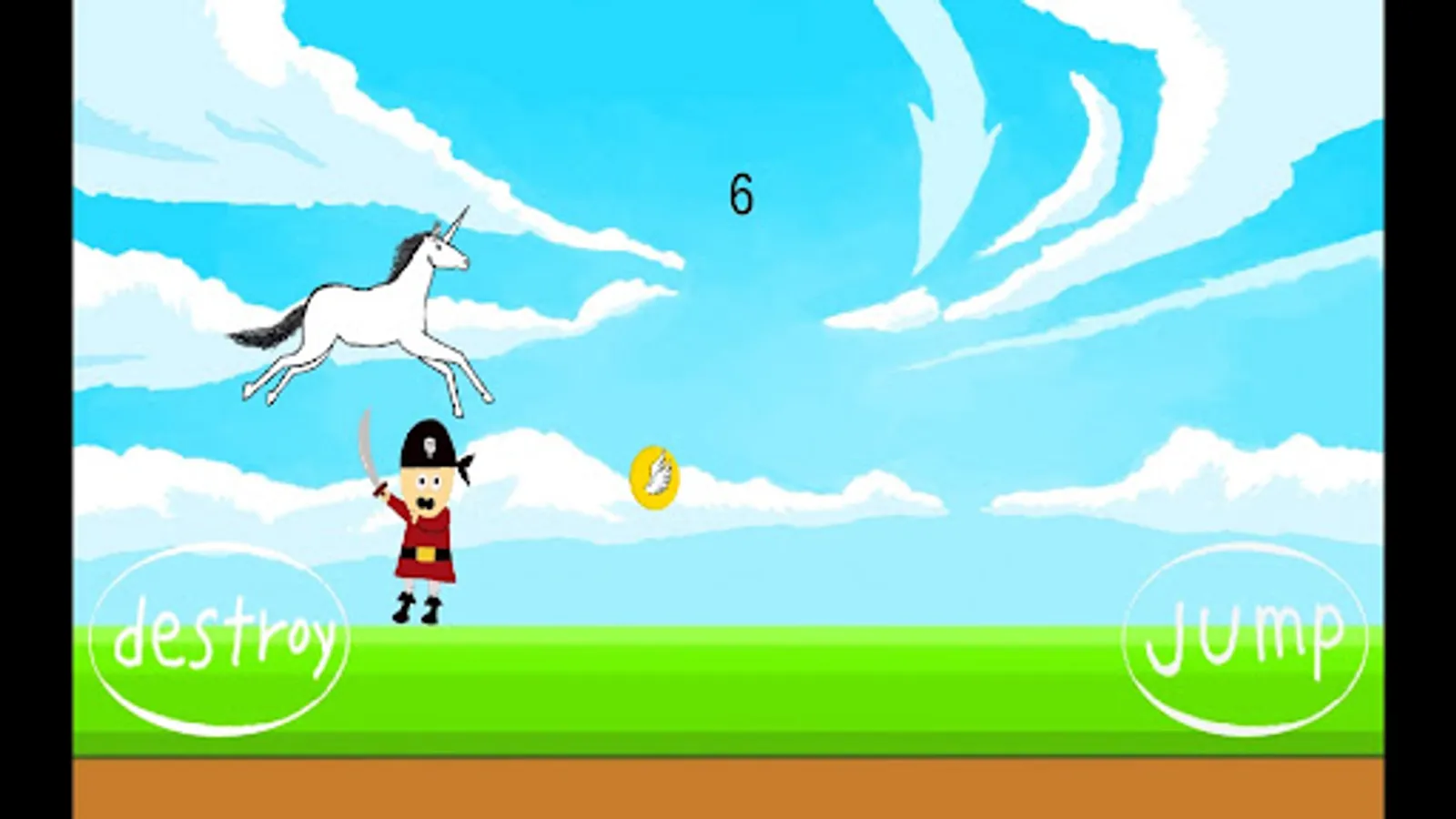 Attack 버튼과 jump 버튼을 이용해 장애물을 피해 목표 지점까지 유니콘을 안전하게 보호하세요!