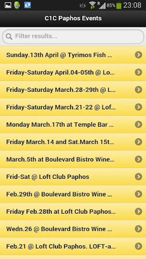 Furthermore the application will include 1 click access to weekly/monthly events per city making it easier to follow the upcoming events either governmental/municipal or private events.
