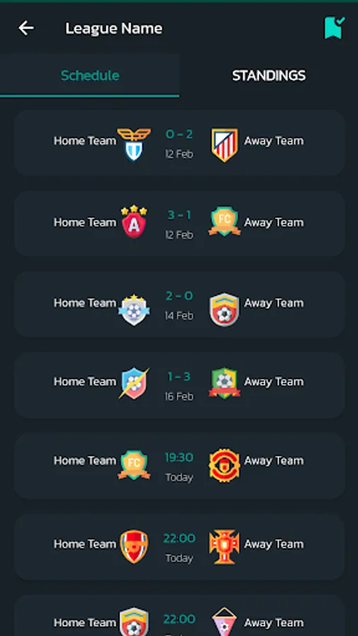 Football live scores app with live football scores and results for the Champions League, Liga and Serie A.