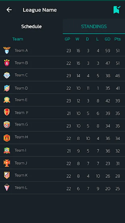 - Live league tables for football