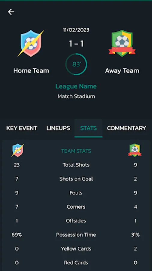 - Detailed match information