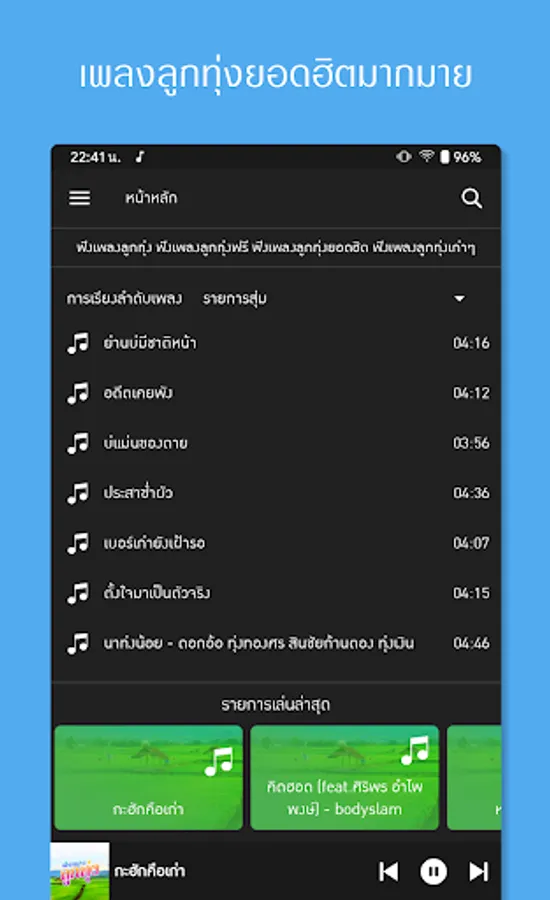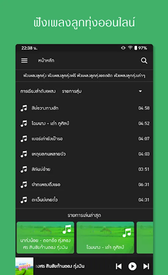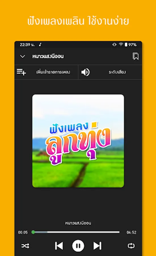 Who likes country music, latest country music Can come this way Meet the new application. Listen to free country music. That comes with entertainment, listening to country music, listening to music and listening to fun music with us, whether it be Lam Luk Thung The latest hit song That will allow you to listen to music for free with us online Listen to music online 24 hours. Continuous music Come and join us to the fullest. Listen to free country music. We have raised the outstanding features for Listen to music online More capable Country music, no internet Listen to country music without internet. Eliminate problems with searching for favorite songs. The latest country music We've brought it here. Luk Thung Online 24 Hours Popular country music From country music stations that have collected country music, country music, popular hits The latest country music Popular songs from music stations Luk Thung Network and MahaNakhon Country Station Listen to popular country music. Listen to free country music here. Free country music. Thai country music. Luk Thung For Life and many more. Enjoy listening to Thai music. Download mp3. Listen to free country music. Once again, it's free and the update is available to you. Listen to country music Easily online with us Listen to free country music. Free download And come to enjoy the music Listen to popular country music. Listen to beautiful music. Listen to casual music according to country style. Don't wait. Come listen to great music with us today. Download now