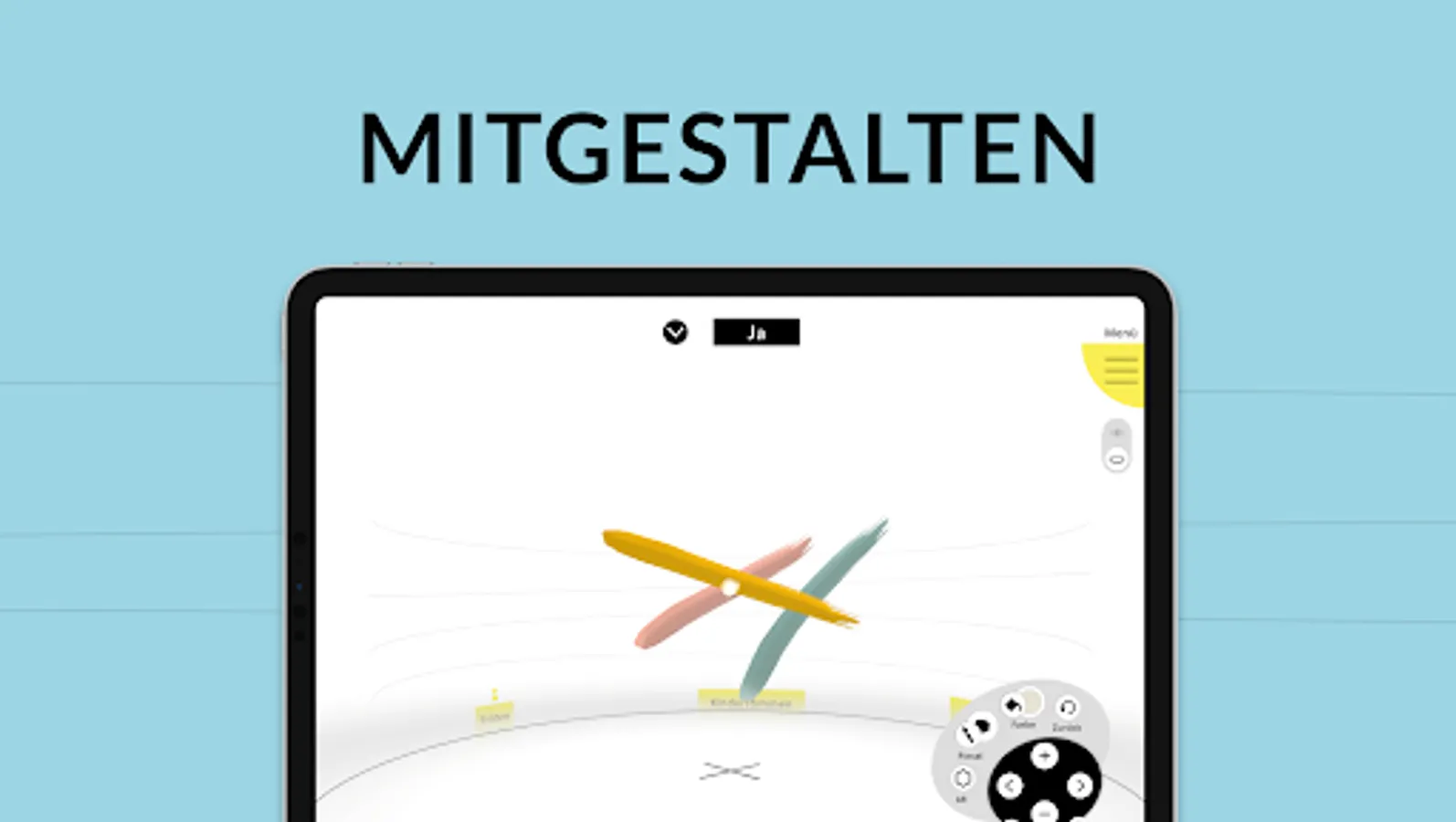 Follow the quarter circles in the museum: In the exhibition you will find the museum satellite and tactile models as well as the BlickPunkt mediation room. Use the iPads located there or your own device to access our app. With it you can change works of art, create your own, find out exciting details about them and exchange ideas with others via video chat.
