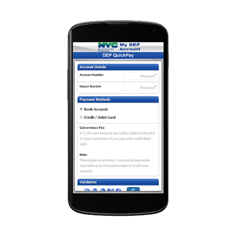 Securely manage your NYC My DEP Account on-the-go using the free My DEP Account app for Android devices. New York City’s Department of Environmental Protection’s (DEP) mission is to protect public health and the environment by supplying clean drinking water, collecting and treating wastewater, and reducing air, noise, and hazardous materials pollution.
