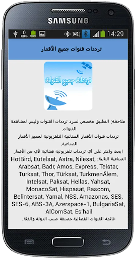 Note: The application is intended to list the frequencies of the channels and not to watch the channels.