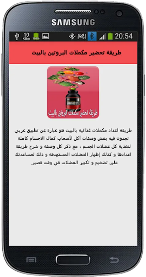 The way to prepare nutritional supplements at home is an Arabic application in which you will find some recipes for eating complete bodybuilders to feed all the muscles of the body, with the mention of each recipe and an explanation of how to prepare it, as well as showing the target muscles to help you inflate and enlarge the muscles in a short time.