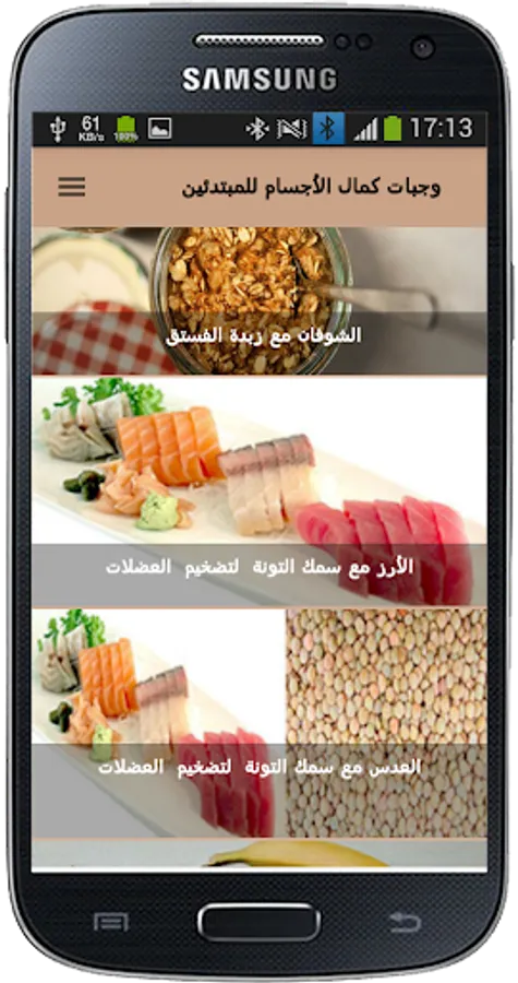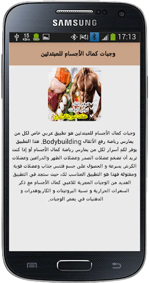 Bodybuilding Meals for Beginners is a special Arabic application for anyone who practices weight lifting.