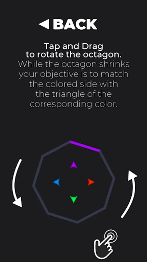 You have to be fast enough to combine the colored side of the octagon with the corresponding color before the shape shrinks too much!
