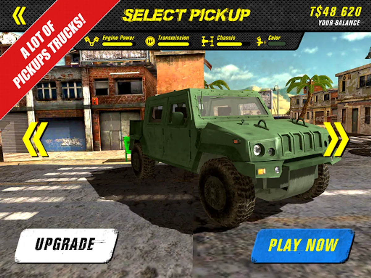 In the game you can earn money and buy new original pickups. You can improve and repair them after completing missions and change the color.