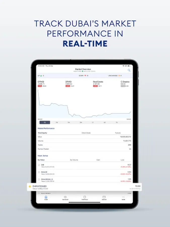 The Dubai Financial Market app provides investors with real time prices, latest market information, and numerous features to manage your portfolio.