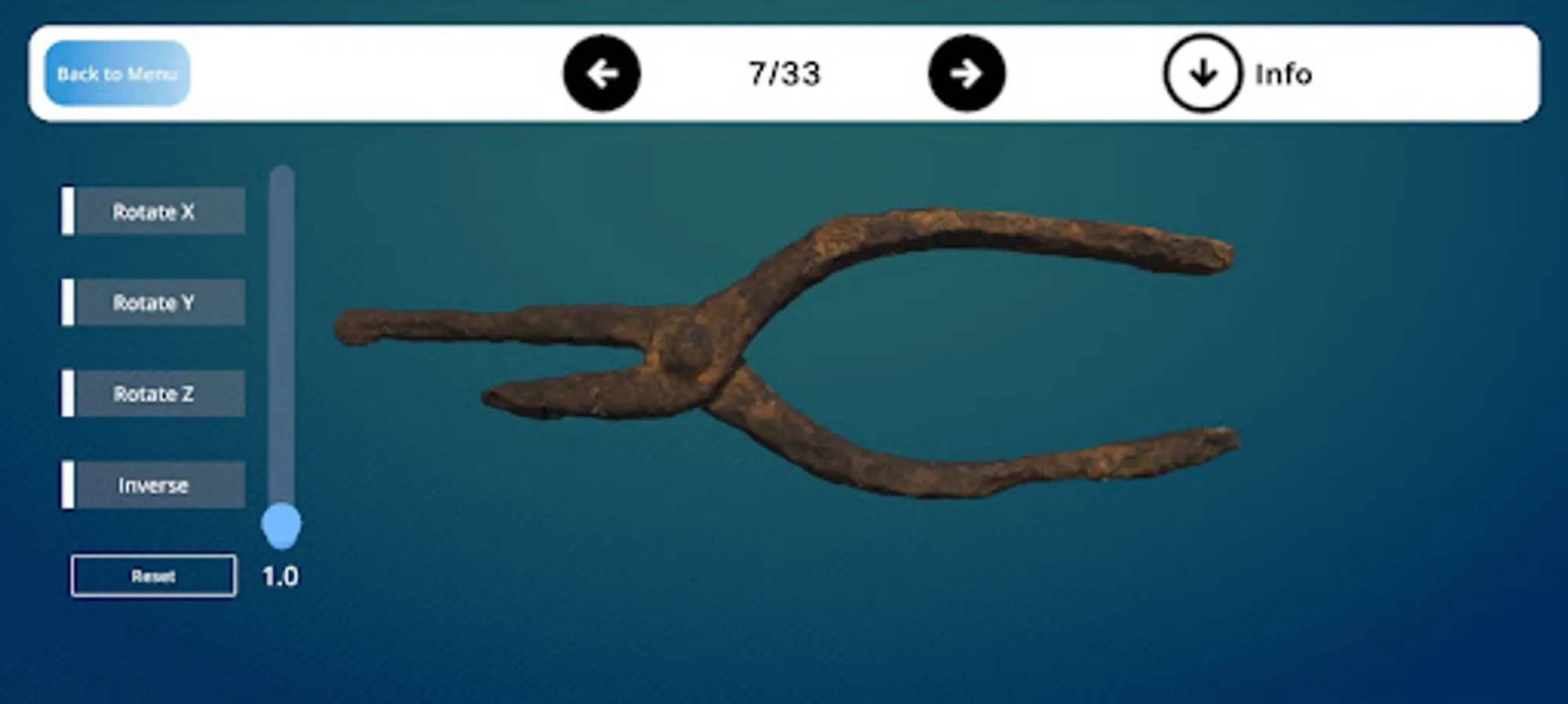 Using modern imaging investigation techniques, such as 3D laser scanning or multispectral photography, the 3D digital reconstruction of several artifacts discovered at Grădiștea de Munte – Sarmizegetusa Regia found in the inventories of the National Museum of Transylvanian History in Cluj-Napoca and the Museum of Civilization was made Dacians and Romanians from Deva. The virtual models obtained are accompanied by historical and archaeological information and data available to anyone through the application, both in Romanian and in English.