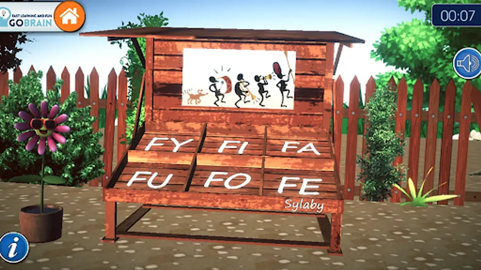 The program includes the learning of all letters of the alphabet from vowels to consonants. It teaches what a syllable is.