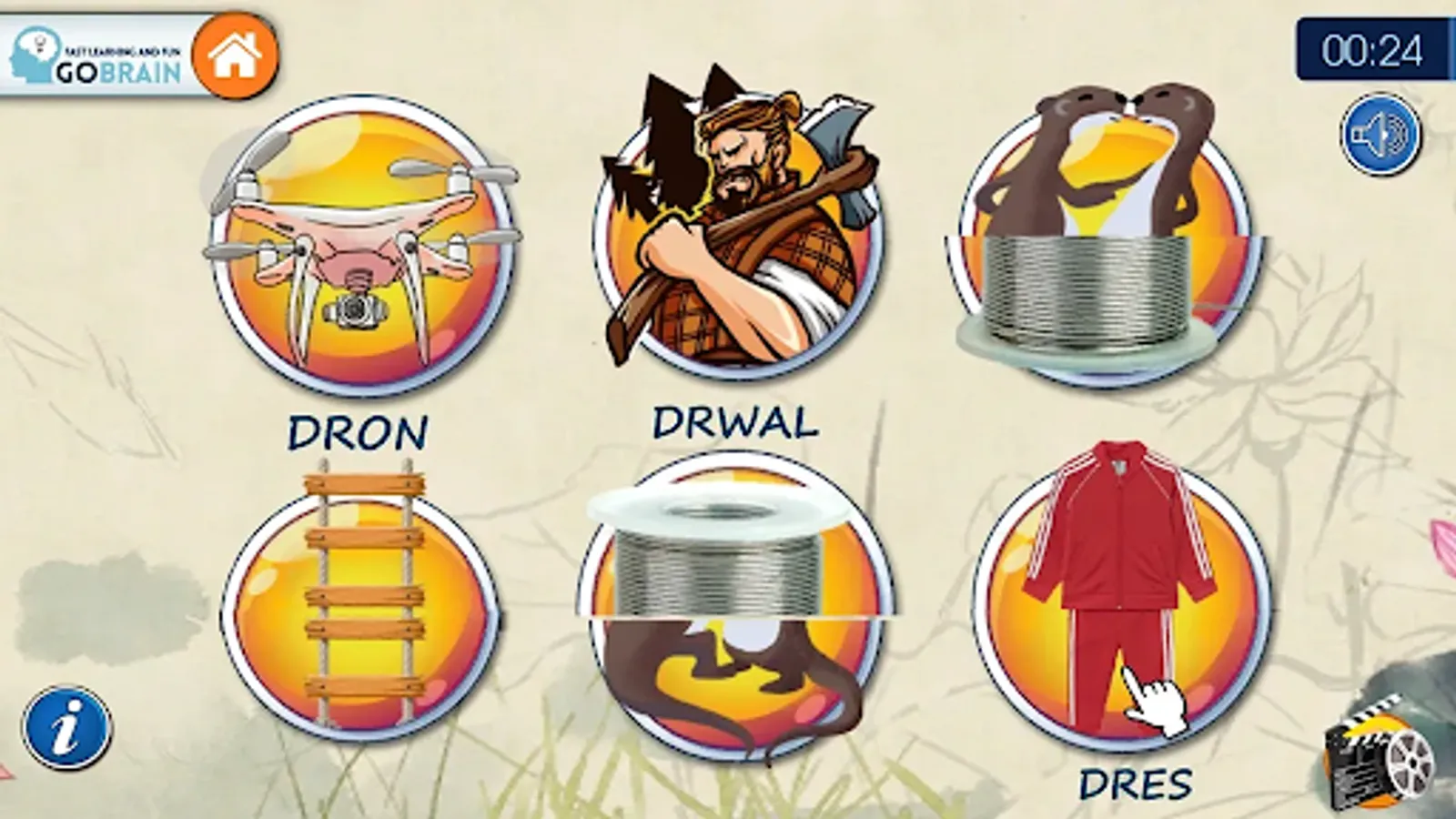 During the tasks, the player learns to recognize and differentiate and pronounce sounds similar to each other, arranges them into syllables, and then into words. They also learn to recognize and indicate the articulation phases of a word: beginning, middle and end of a word.