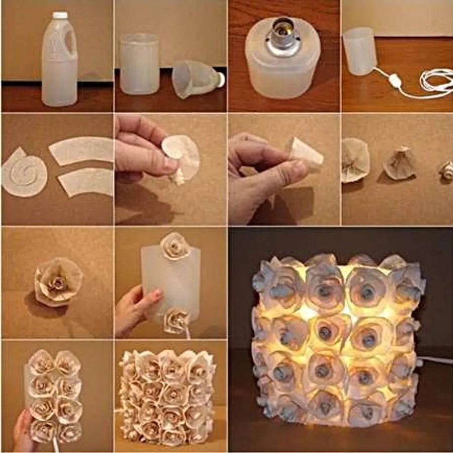 DIY Lamp Ideas is a Craft Project from recycled materials that are easy to make and so many kinds. Recycled materials which we often ignore can have a high value if we managed them properly, lamp making ideas for example. In this application we will be guided to make craft project specifically in form of Creative Lamp Ideas which we often used to be a room decoration in our homes. To beautify your room no surefire way to do but to buy expensive new furniture is to make arts and craft projects from recycled goods unused. We will be sure when around you certainly easy to find secondhand goods are scattered, it is certainly disturbing, isn’t it? At least it is eyesore. But if we want a bit of exertion and creativity, you can transform them into unique lamp craft ideas.