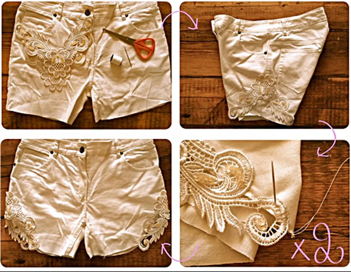 Embellishing can also be done in refashioning clothes. Adding trims like lace, appliqué, and embroidery are ways to embellishing.