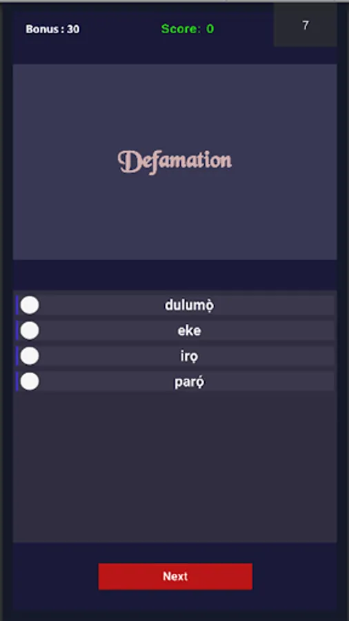 Yoruba-English Quiz Screenshots
