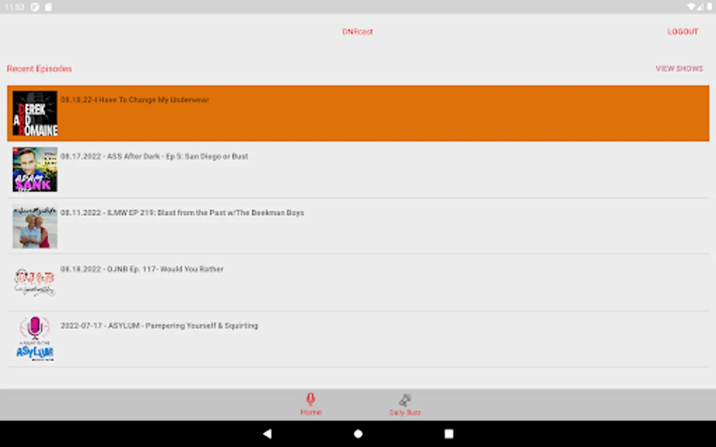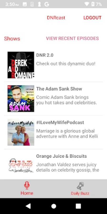 DNRcast is a podcast and live streaming audio player that includes group chat and live radio show call-in functionality. This new Android app allows DNR Plus subscribers on DNRStudios.com to access their favorite shows conveniently in a standalone app. DNR Studios is home to a dozen daily and weekly digital audio shows. DNR Plus subscription required.