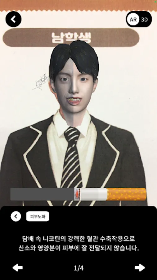 Stay away from cigarettes, and get close to the smoking prevention AR app! It protects your happy and healthy daily life.