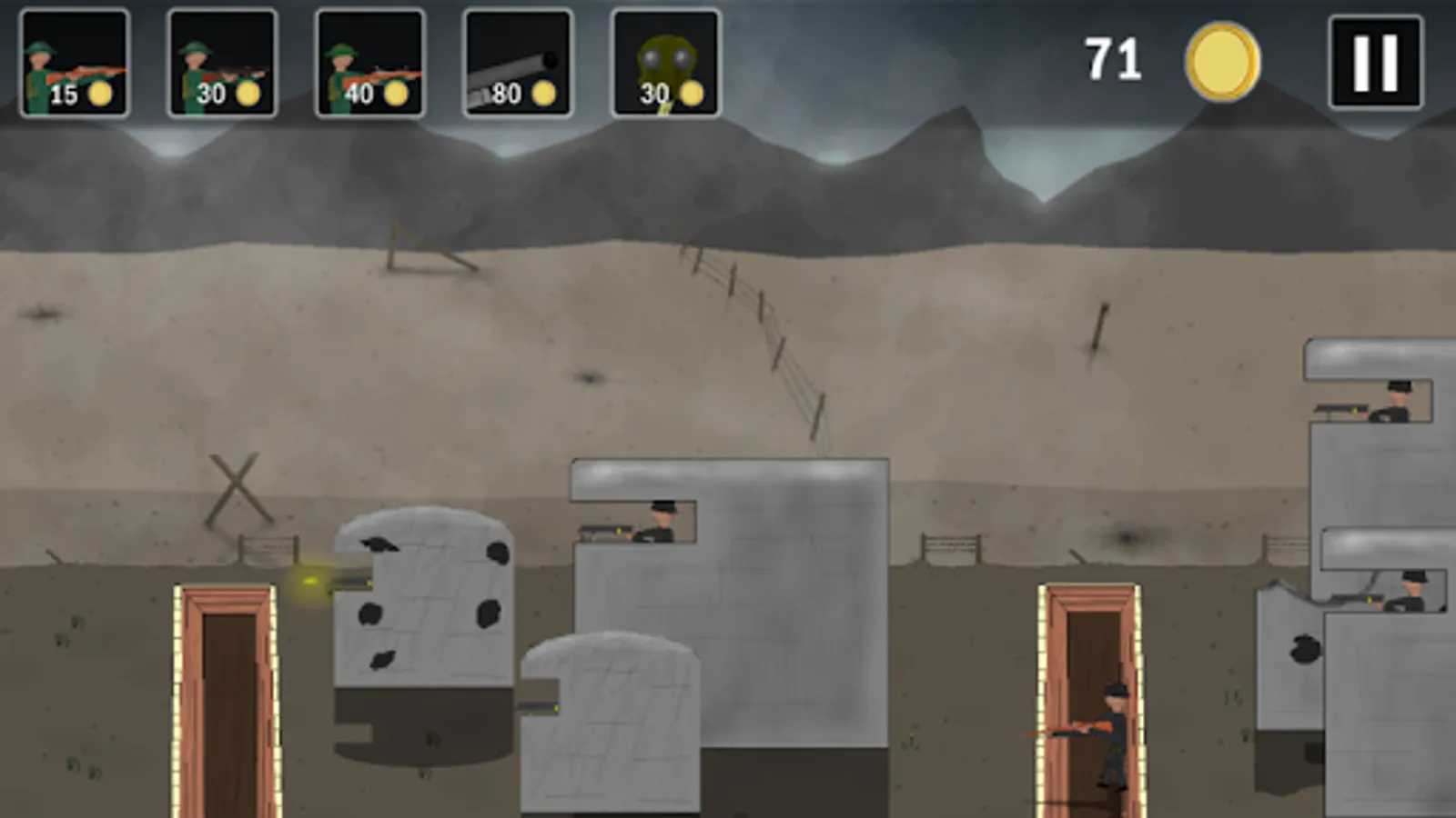 Enemy attacked your trench by gas? Deliver gas masks to your soldiers as fast as possible, before they die! There is no way to continue your offensive? Use artillery to clear enemy trenches before you assault them! There is always way to win! If you choose your tactics wisely, world war 1 could be blitzkrieg in the end! Just remember, never give up and hold your trenches till the last one!