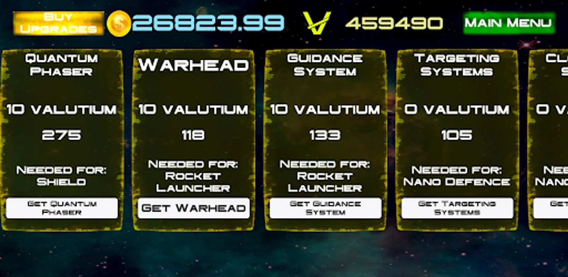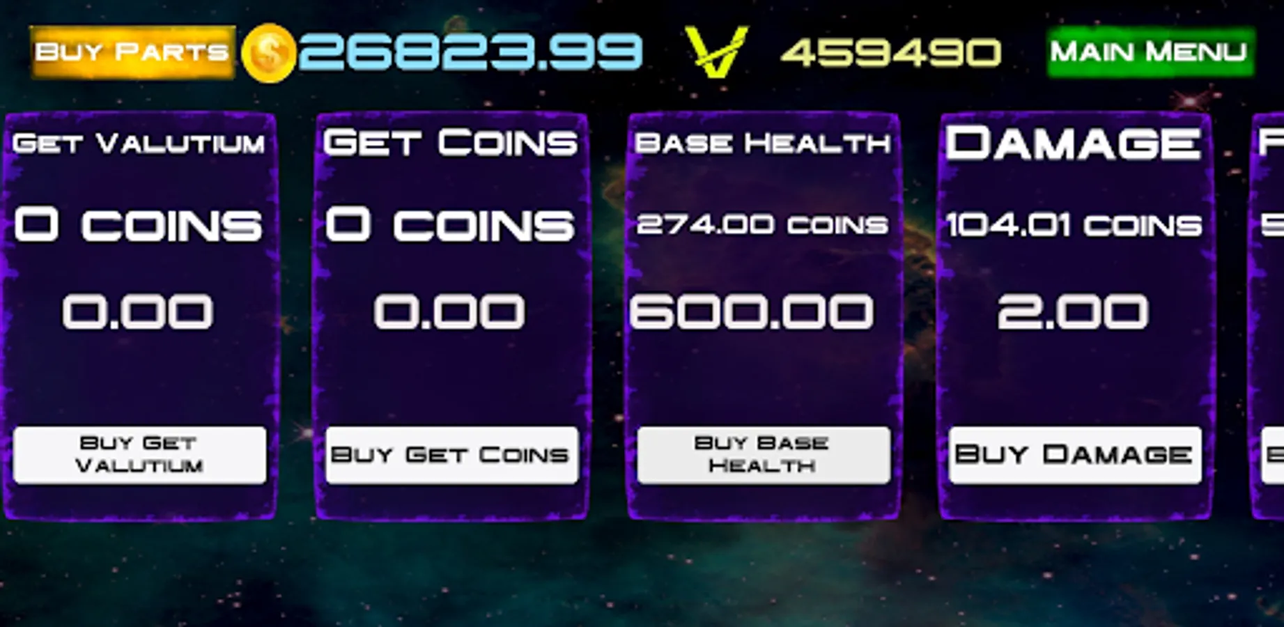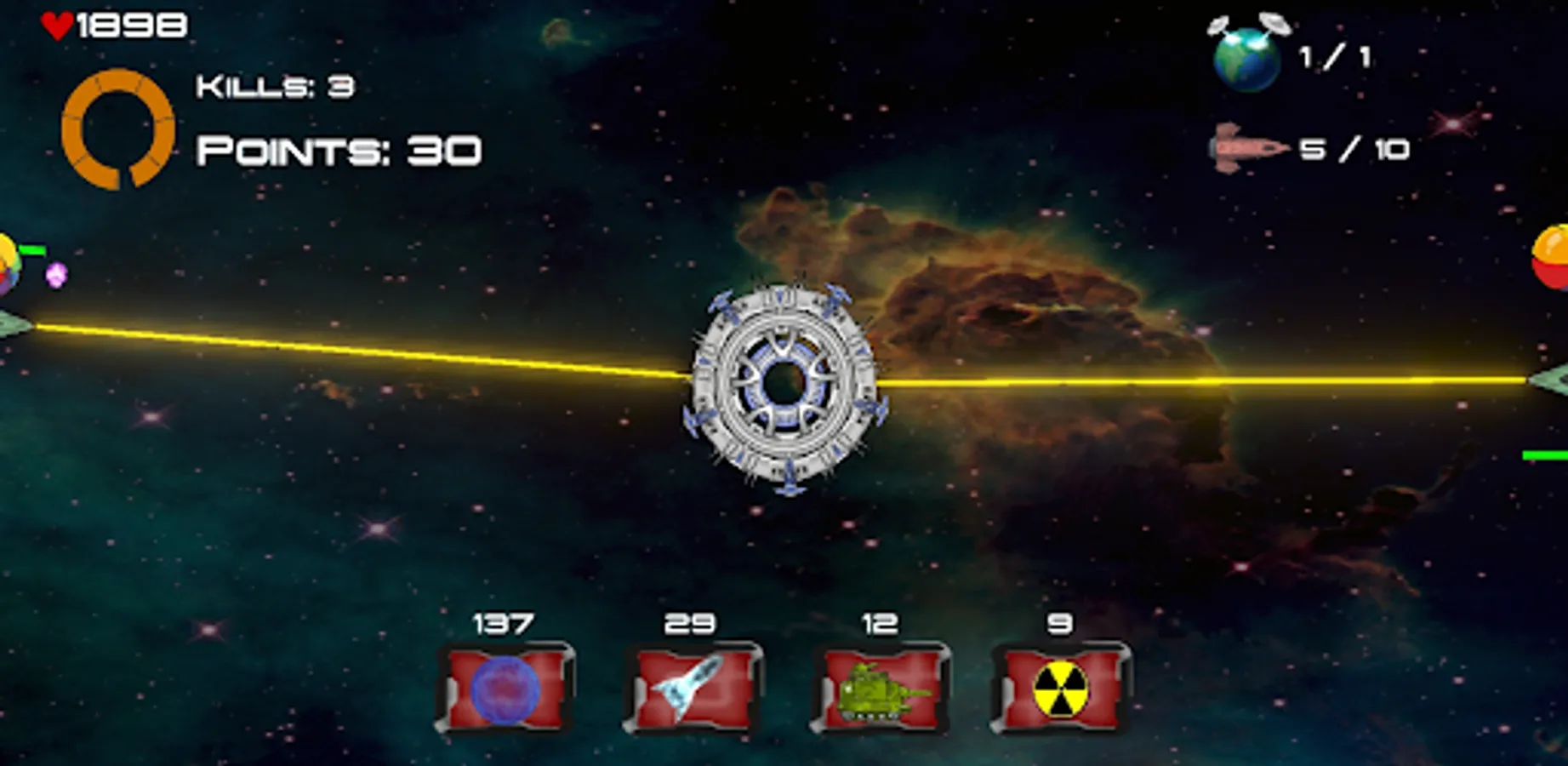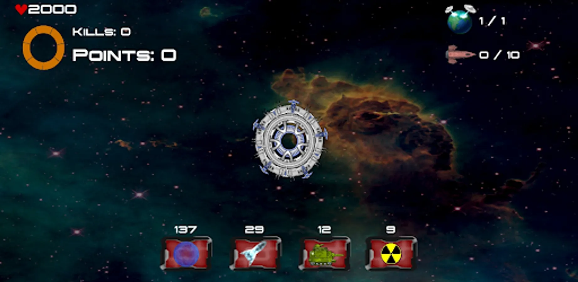 The enemies will be incoming all the time and you have to tap on them in order to defend yourself, but with progressing the game they will become harder to kill. No worries! You have at your disposal "Upgrades" menu, where you can upgrade your health, damage, the amount of coins you get from each ship and you can even get more coins with ads.