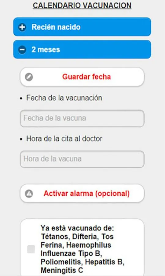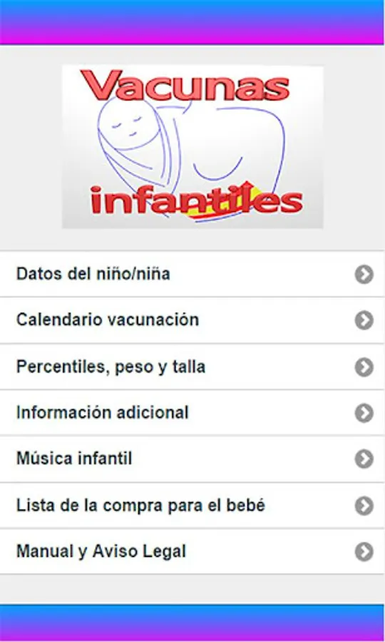 Spanish custom application of childhood vaccines schedule, with the ability to store important data baby.