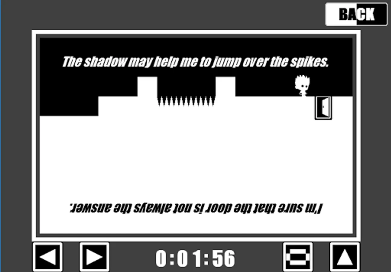 This is a adventure puzzle game with a new idea were you must put your brain at test.You must find the exit of each room but dont forget to change the dimensions and use the shadow to pass the levels . Measure the time with friends and see who is the best.