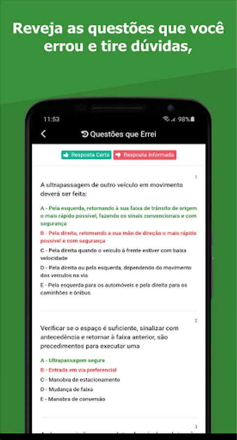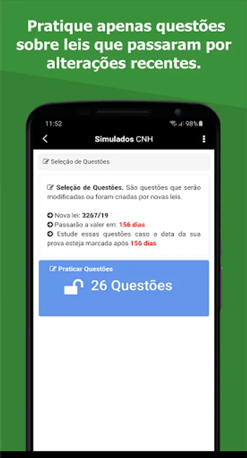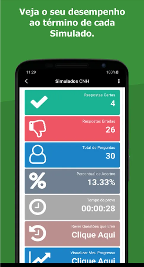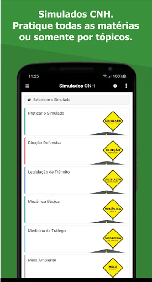 The application "Simulado Prova CNH", was developed for you to study the questions for the test of the first qualification and renewal of the CNH (National Driver's License) of DETRAN.