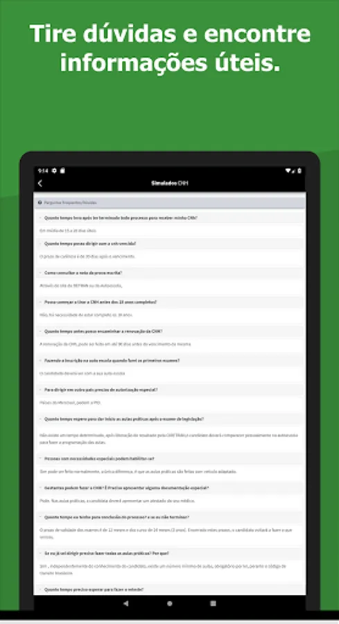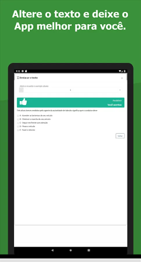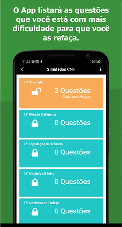 See the details of the features of the App "Simulado CNH - Preparatory for the DETRAN Test":