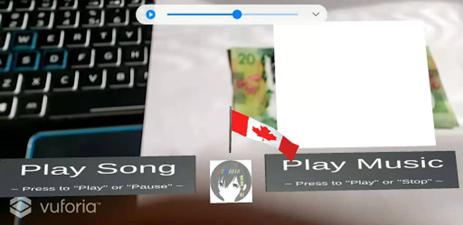 The is an AR tool that uses your Android smartphone to generate a flag, play national anthem music, songs or movies. To active the AR object, please place a currency note in front of your AR camera. Then, your country flag will be popped up based on the country of your currency note. Then you can press to play the music, song, or movie if available.