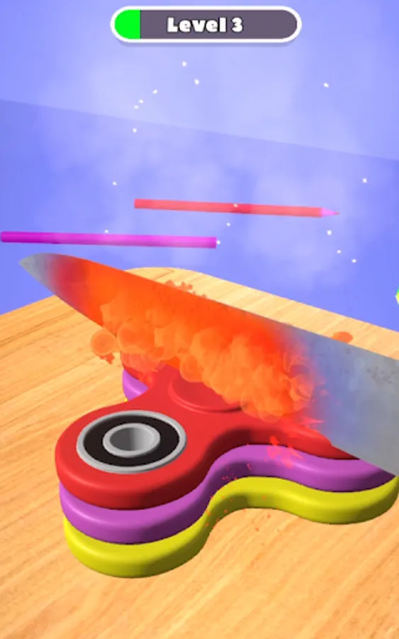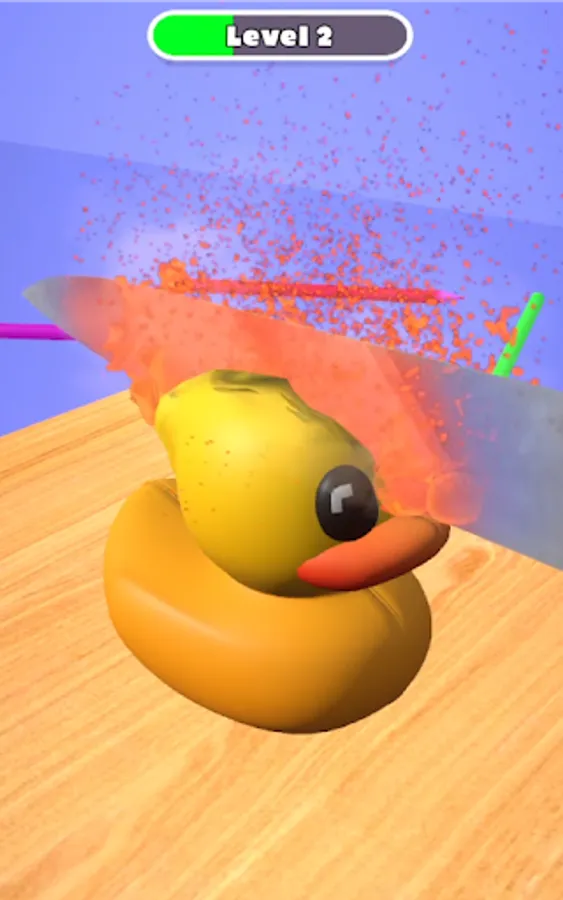 Plunge your knife through the various objects, watching them slowly fall apart. Phones, rubber ducks, fidget spinners and more. Melt them away with your shining red blade.