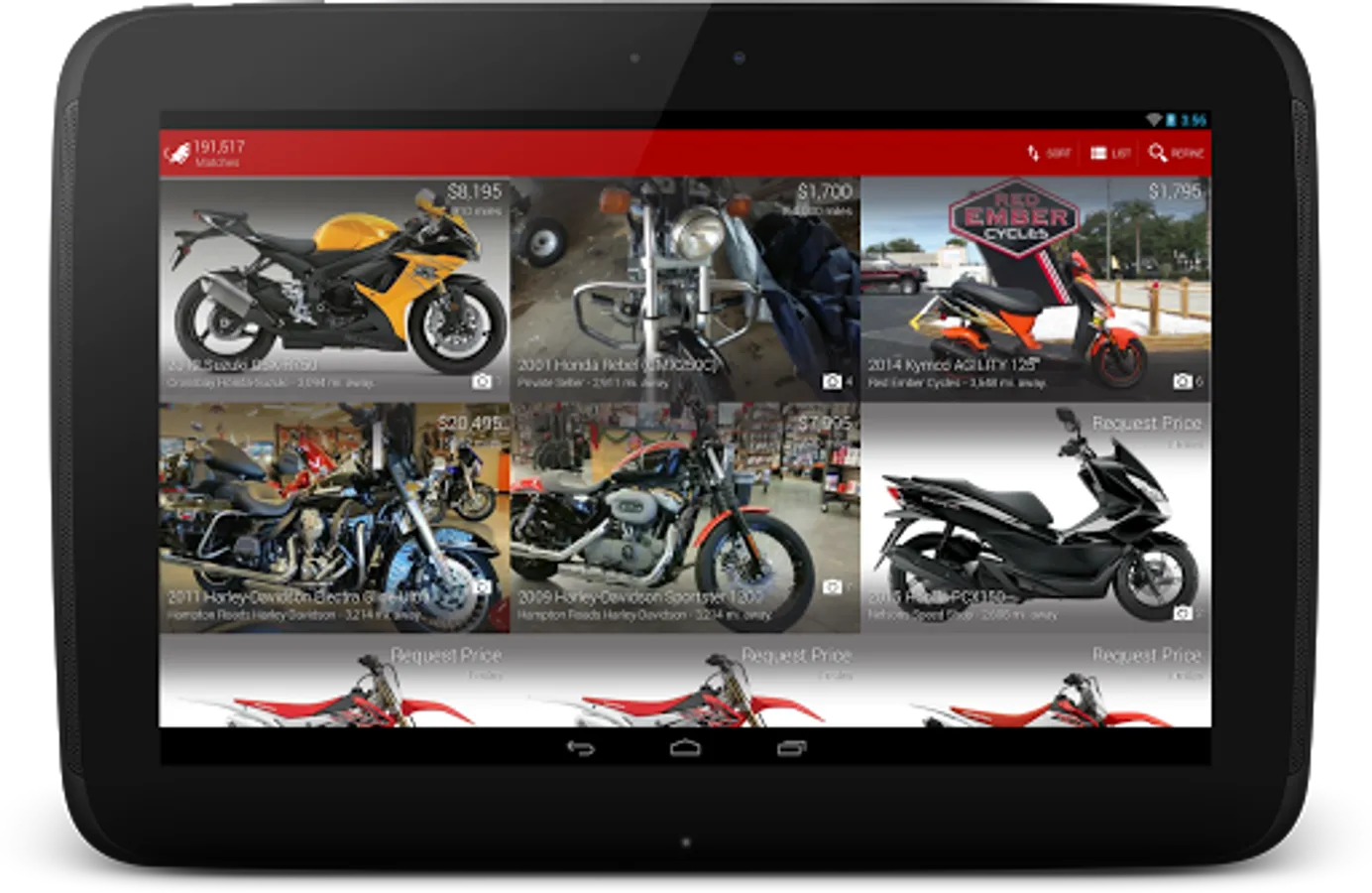 • You can also locate motorcycle dealers near you, get insurance quotes and estimate your payments within this app.