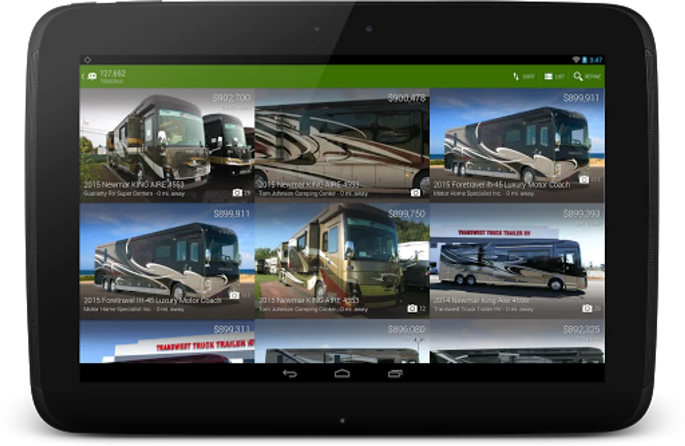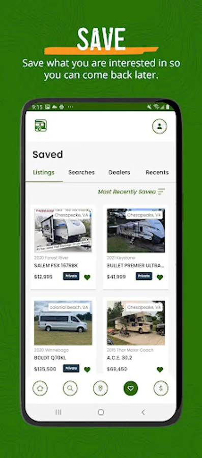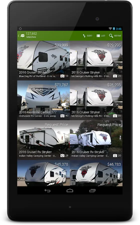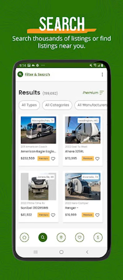 • You can also locate RV dealers near you, get insurance quotes and estimate your payments within this app.
