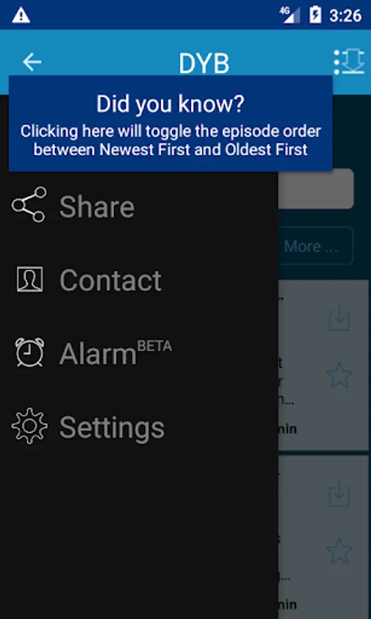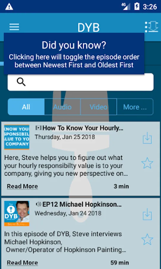 This is the most convenient way to access DYB on your phone. With this app you are always connected to the latest episodes and the show. You can also star your favorite episodes and save them to a list so you can easily enjoy them over and over! This app is complete access to DYB and if you're a fan of the show you won't want to be without it!