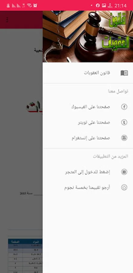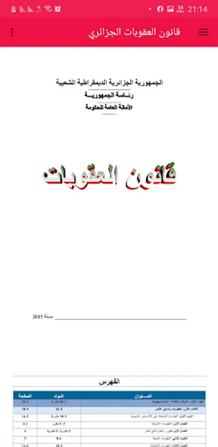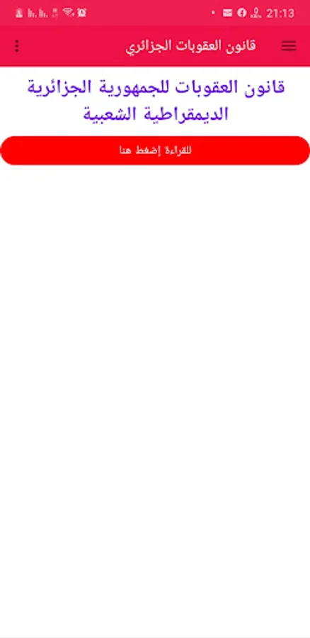 In this application, you can read the entire penal code and without the net, the law published on the official page of the government of Algeria
