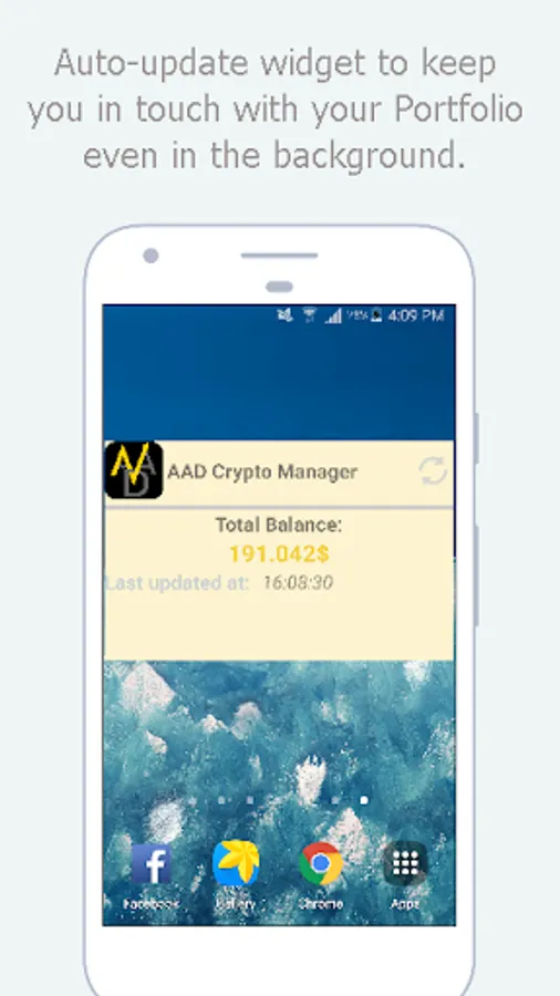 With AAD "never lose track of your crypto investments" literally. Our easy to use and well maintained user interface is designed to make the investors feel comfortable tracking their earnings especially when dealing with huge numbers. On top of all of this, AAD considers that not every trader have time to observe his investments so we have provided simpler ways for that like enabling notification and widget.