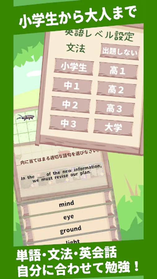 You can freely choose your English level from elementary school students, junior high school students, high school students, and university students!
