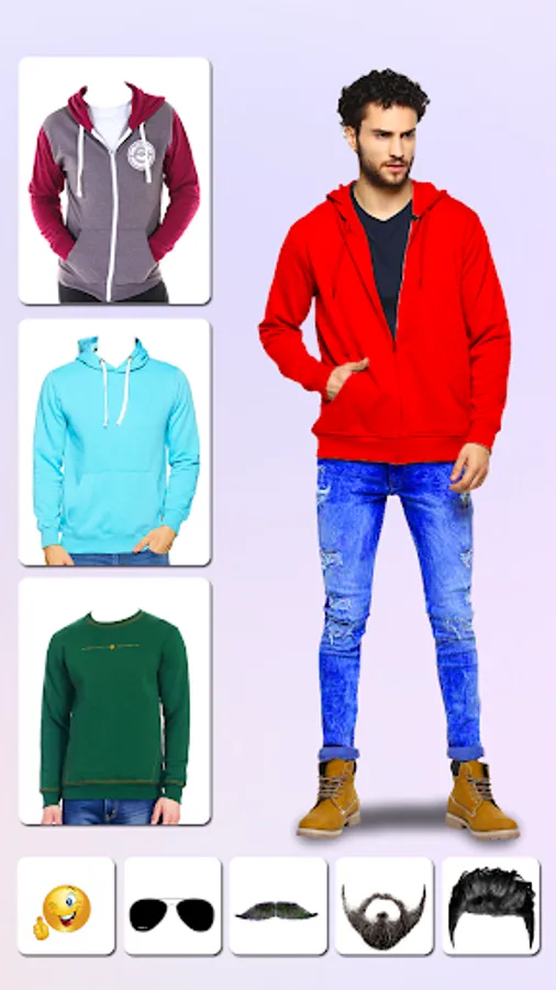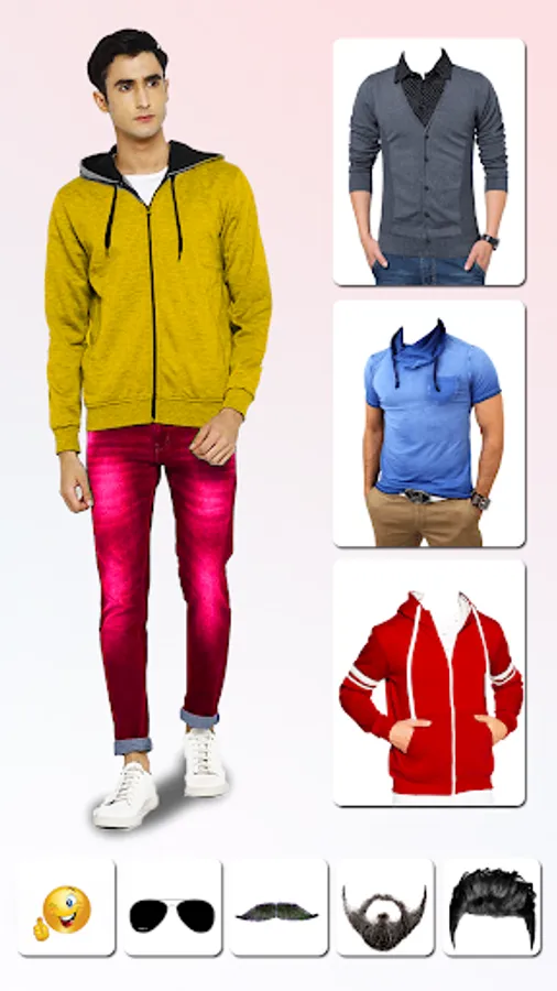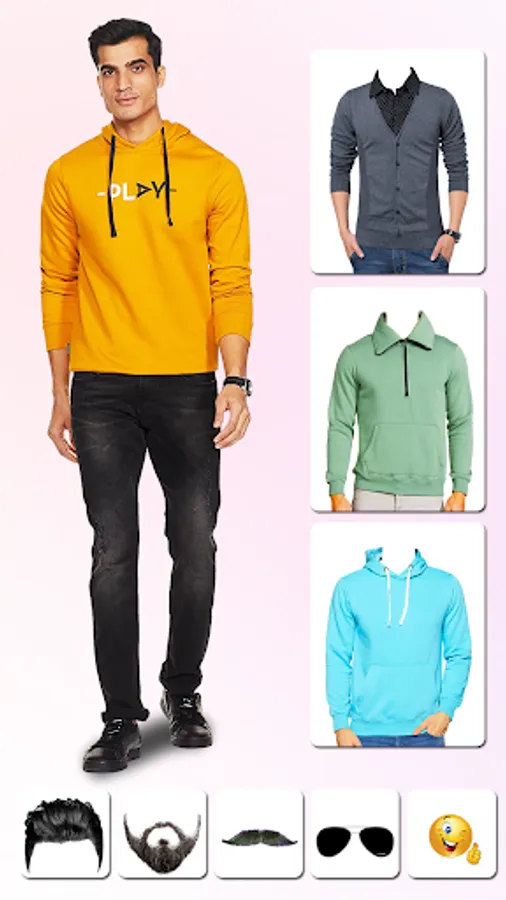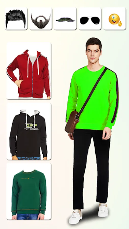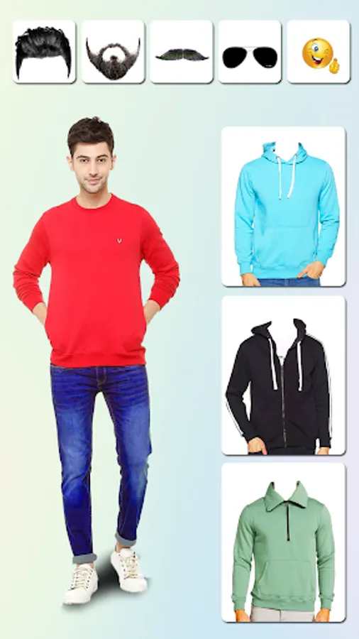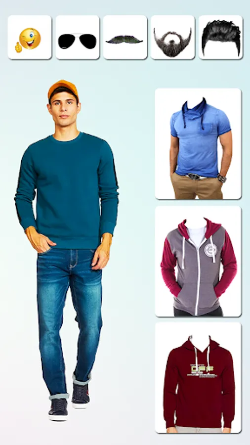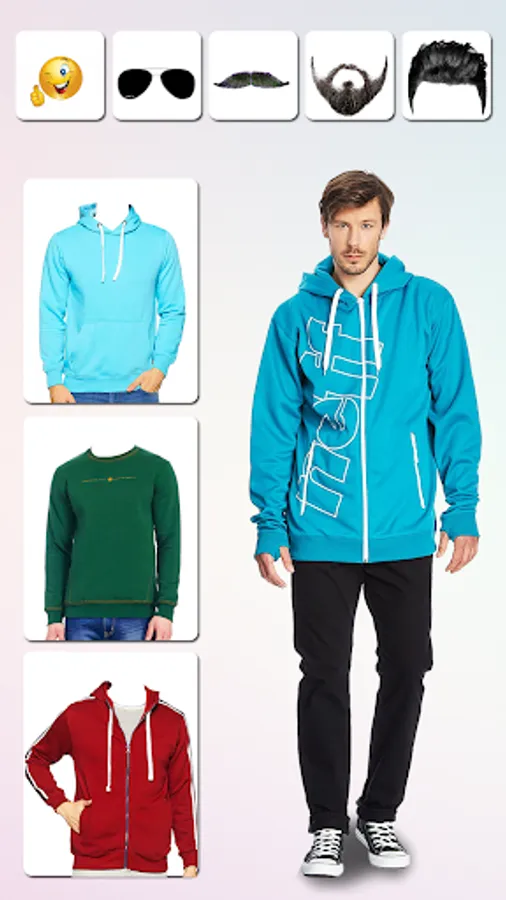 Echo mirror effect, Blur photo, Color Splash, Blur Background, Photo Collage, Blend photo effect for photo & stickers, lock and unlock feature for cb backgrounds and stickers are the other features of this Man Sweatshirt Photo Montage.